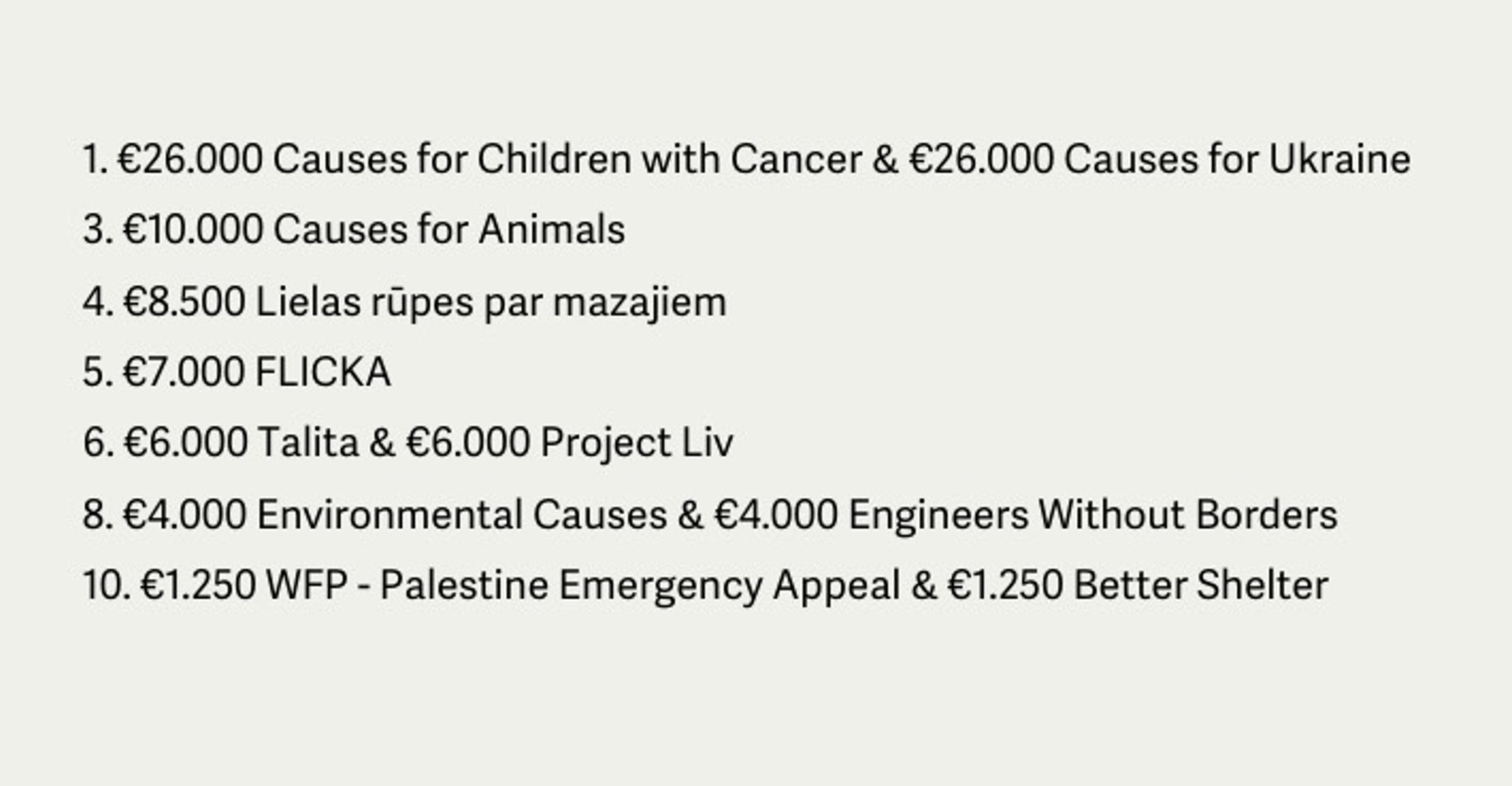All employees were given the opportunity to nominate initiatives that they consider to be good, and then everyone voted for one of the initiatives. The employee votes determined the distribution of the money to the different charity options.