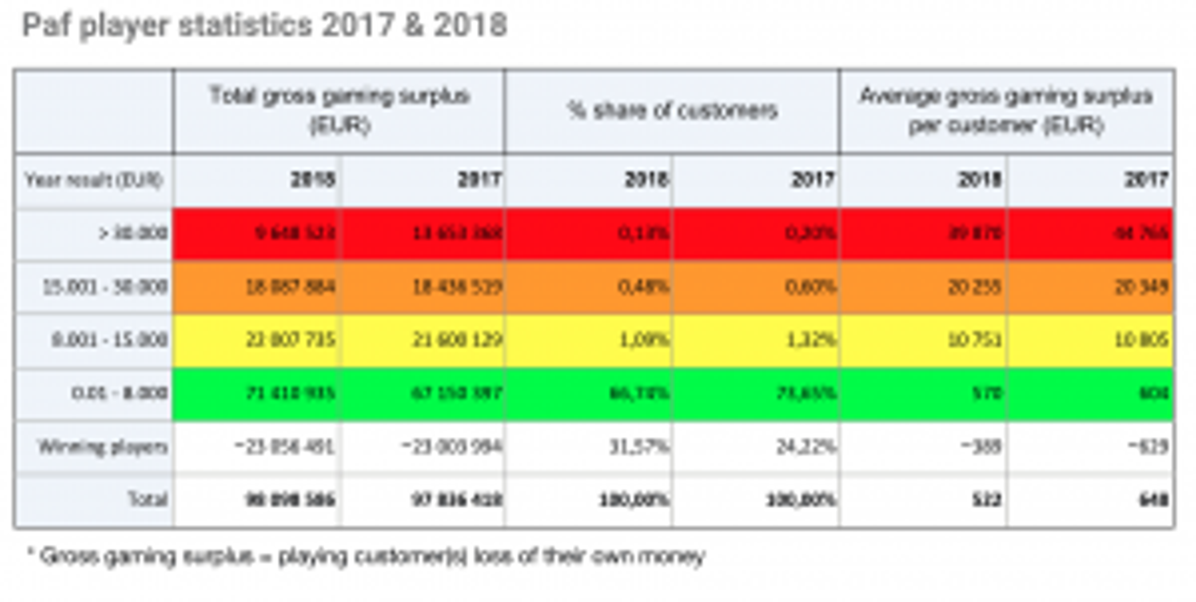 Paf will further increase the level of responsible gaming in 2019. The company’s gaming radar has been developed to enable faster and better detection of worrying gaming behaviour. This means that in the future Paf will be able to stop all direct marketing to gaming customers as they start to appear in the lower risk zones.
