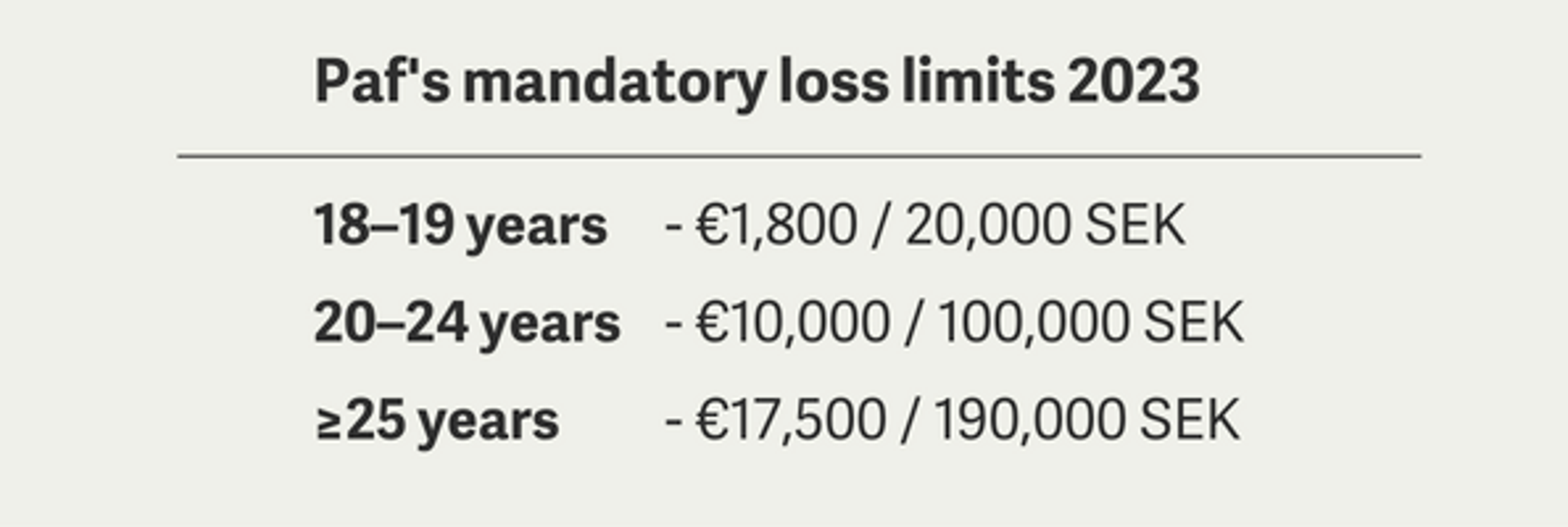 In 2022, Paf implemented a lowered loss limit for young people aged 18–24 of 10,000 euros. The loss limit for young people is now being complemented by a reduction for all persons aged 18–19.