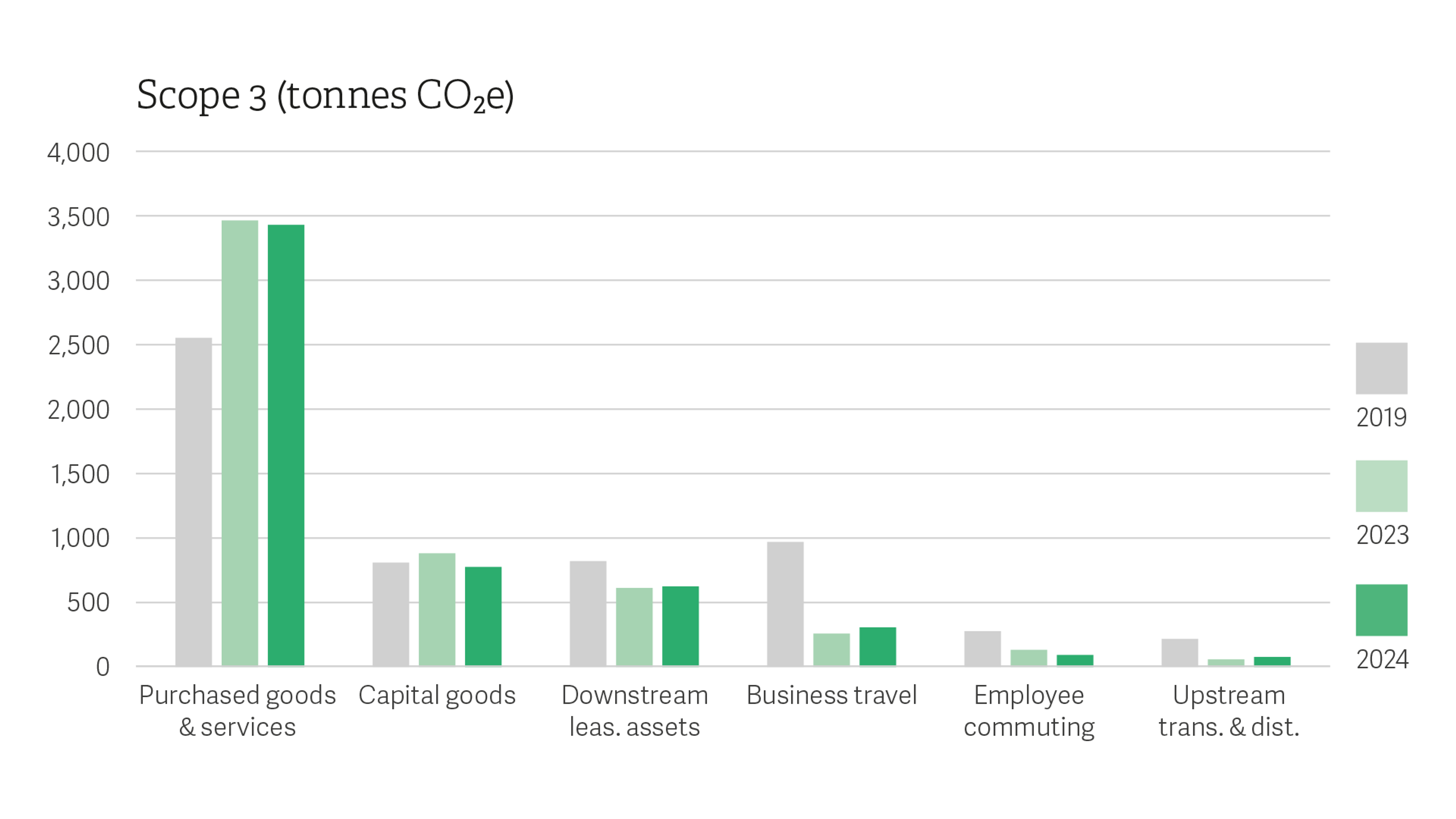We have recalculated the 2019 base year using the same methodology and specifications as for 2023 and 2024. The results for 2024 are directly comparable to those of the 2019 base year and 2023.